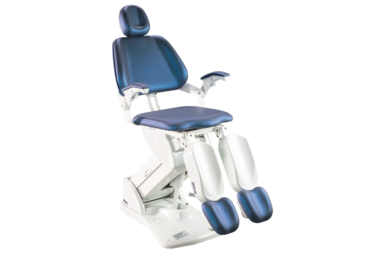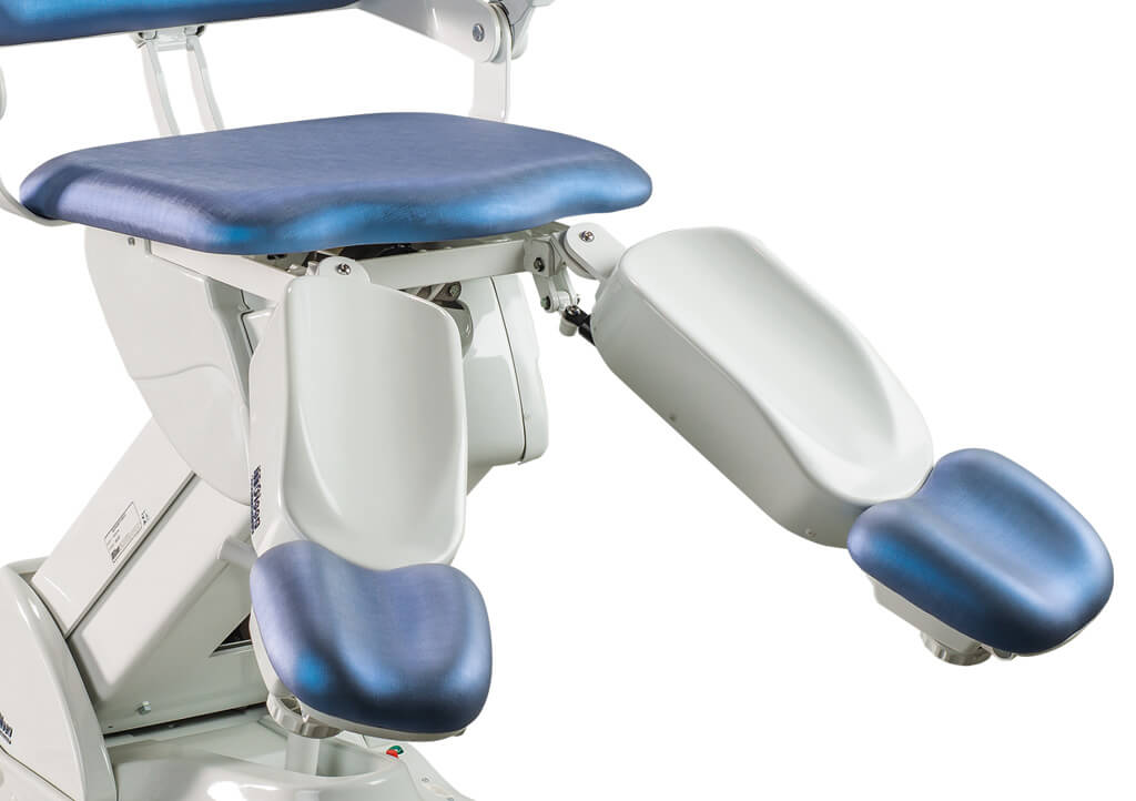 Equipamento conta com exclusivo movimento de adução e abdução nas perneiras, que possibilita maior ergonomia no atendimento.