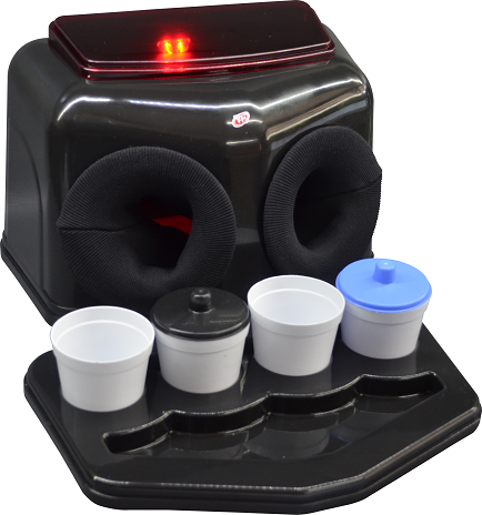 - 4 reservatórios para líquido (água, removedor, fixador e água)