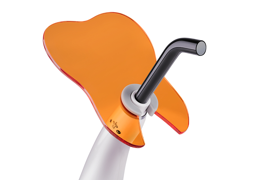 Ponteira de fotopolimerização confeccionada em fibra óptica orientada (sem fuga de luz), autoclavável a 134ºC e com giro de 360º.