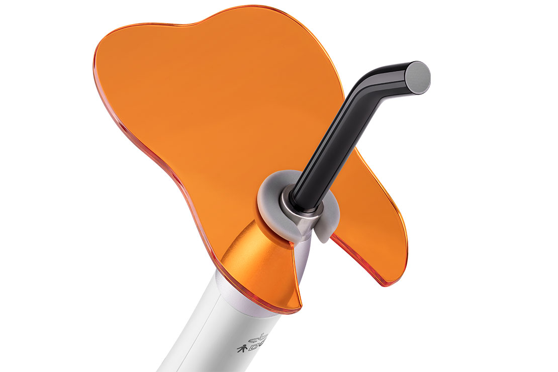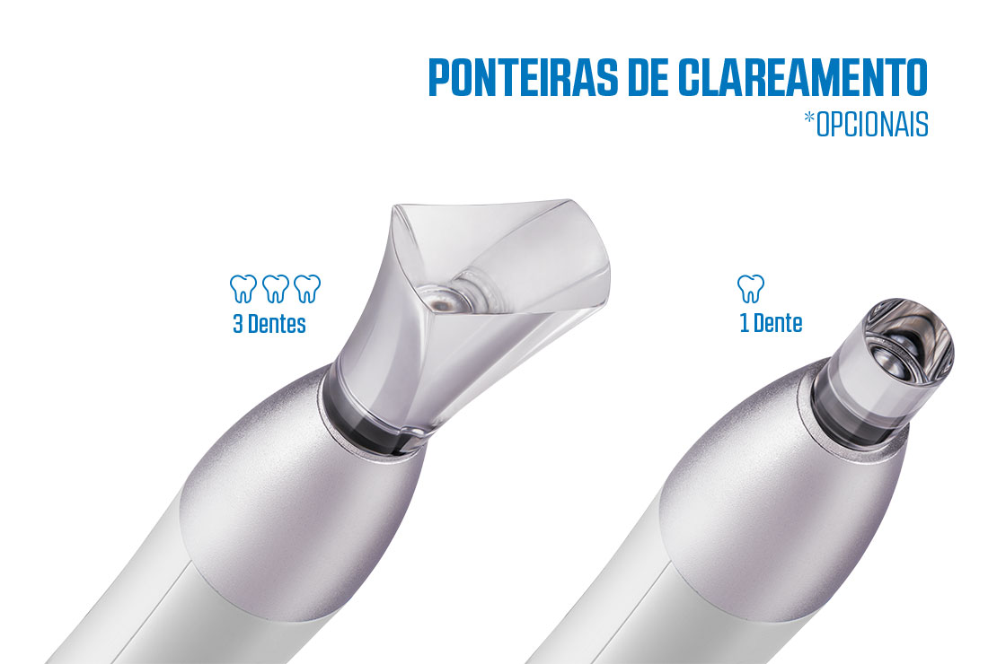 Ponteira de fotopolimerização confeccionada em fibra óptica orientada (sem fuga de luz), autoclavável a 134ºC e com giro de 360º.