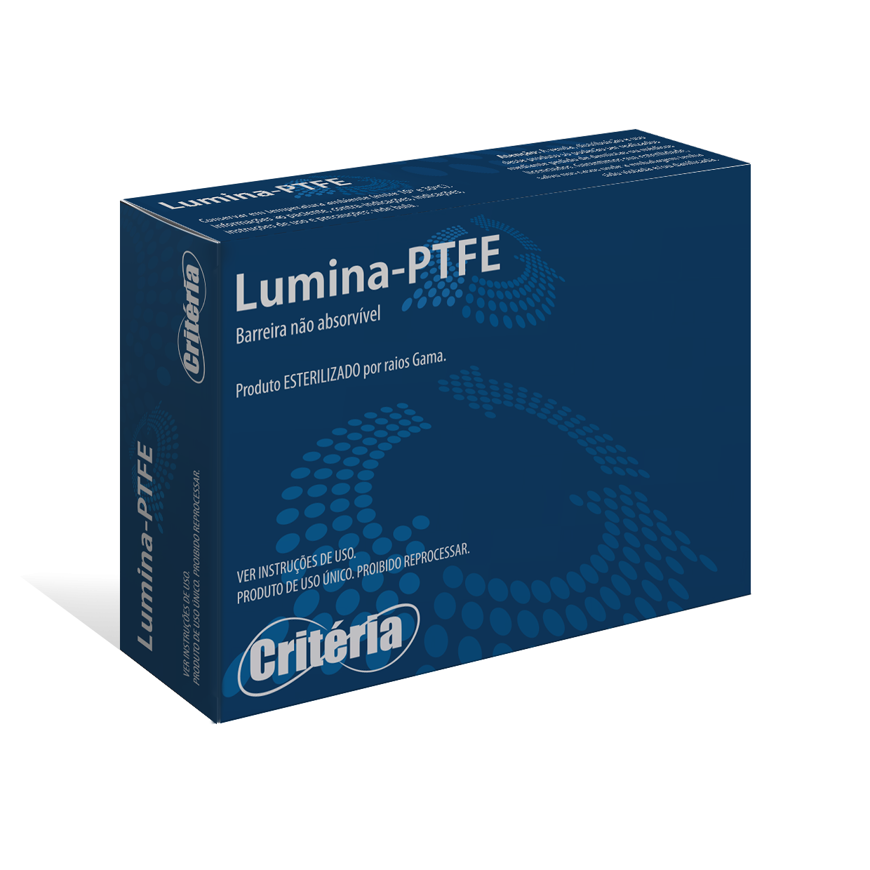Desenvolvida para casos onde haverá exposição  ao meio bucal, LUMINA-PTFE é uma barreira regenerativa composta basicamente por Politetrafluoretileno denso (d-PTFE), biocompatível e estéril, cujo propósito de aplicação clínica é  servir como barreira em cirurgias de enxertia óssea onde são exigidas regenerações de tecido ósseo e conjuntivo, evitando qualquer tipo de comunicação com o meio externo.