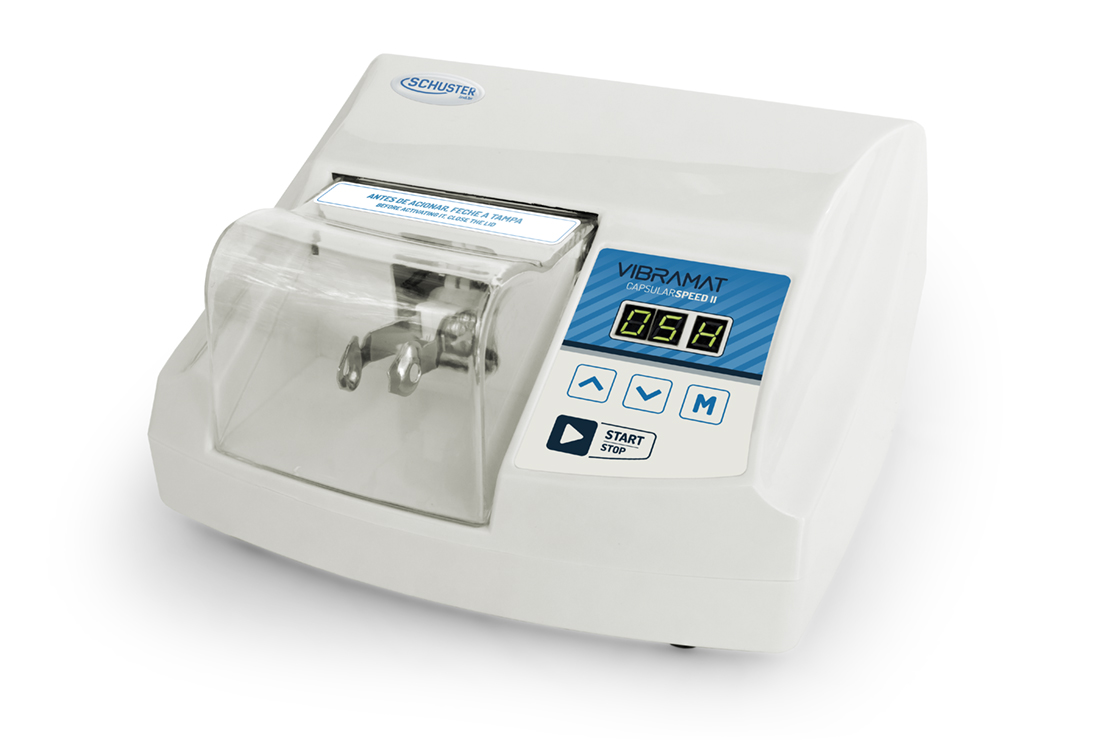 Vibrador para amálgamas e ionômeros em cápsulas pré-dosificadas.
